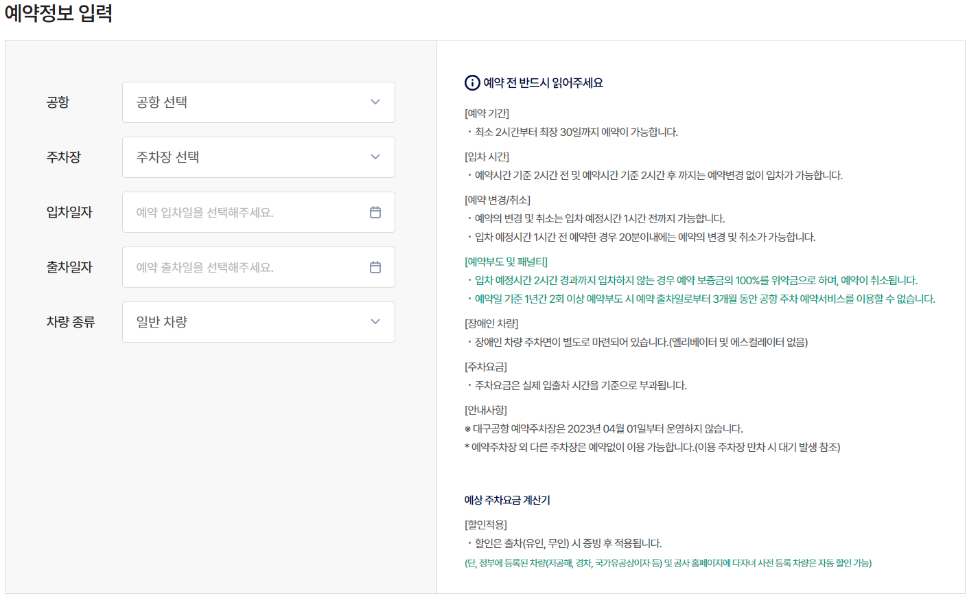 - 예약 시 차량 정보와 입차, 출차 일자를 정확히 입력해야 하며, 예약 후에는 문자나 이메일로 예약 내역을 확인할 수 있습니다.