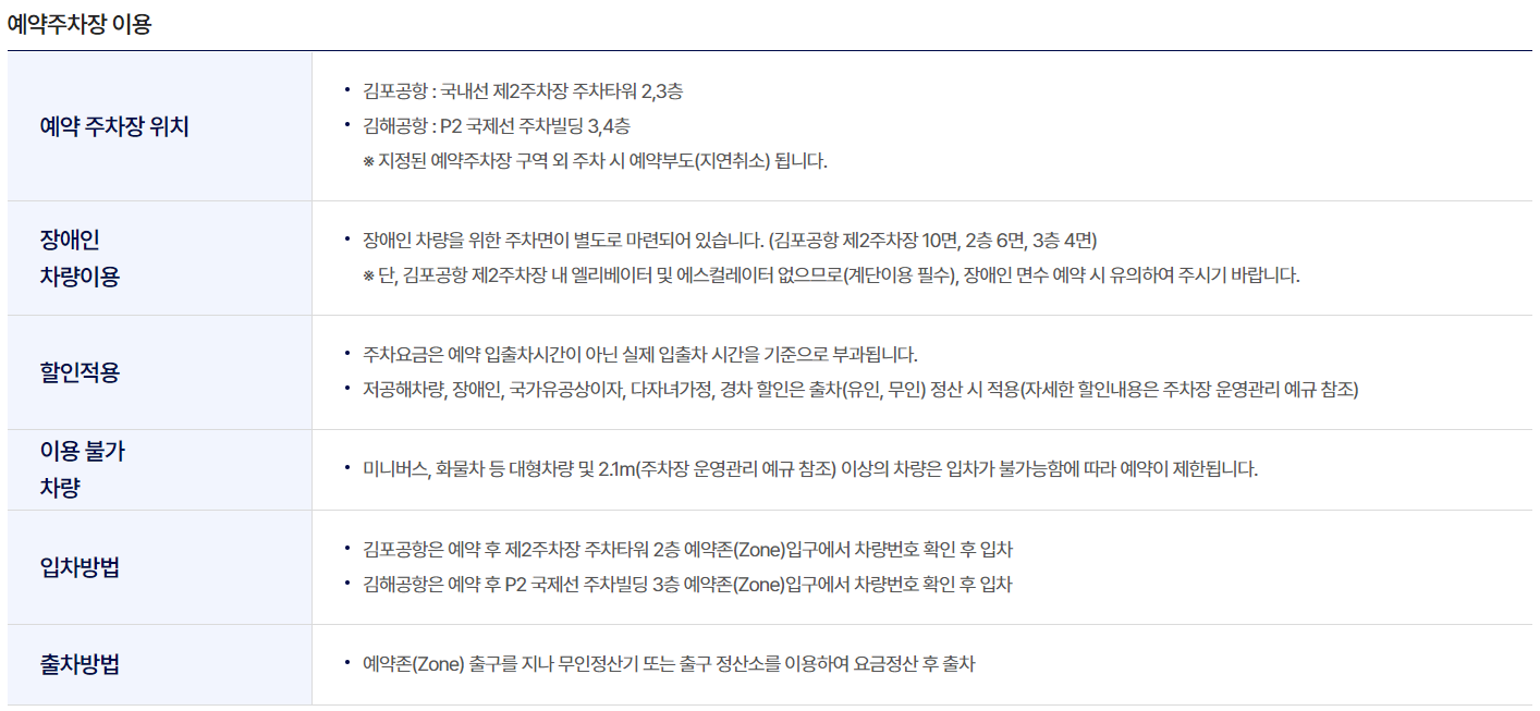 - 김해공항 주차 예약 기간: 최소 24시간 전부터 최대 30일까지 예약 가능.