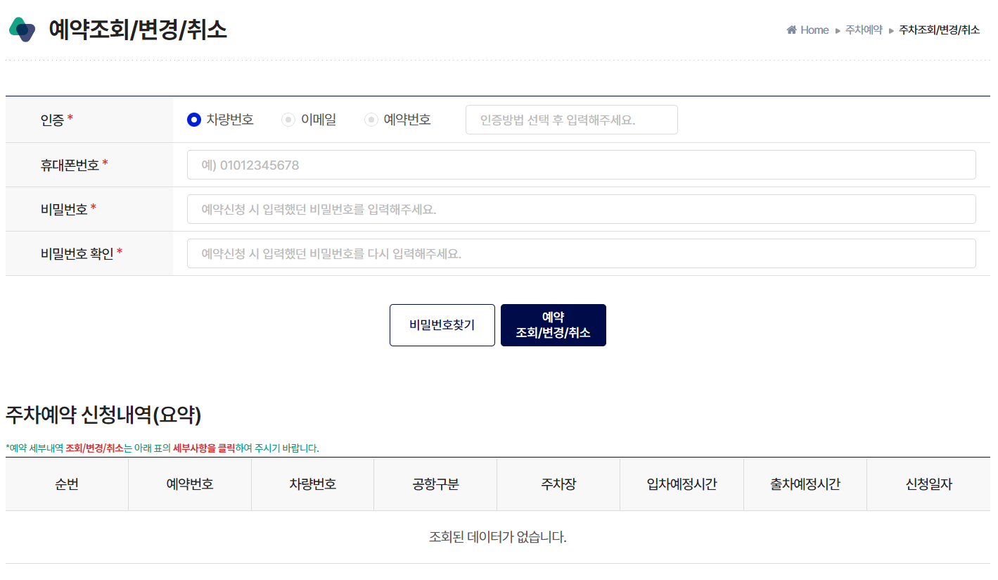 - 예약 변경: 예약 변경은 입차 시간 12시간 이전까지 가능하며, 변경 사항이 있으면 예약 취소 후 새로 예약해야 합니다.