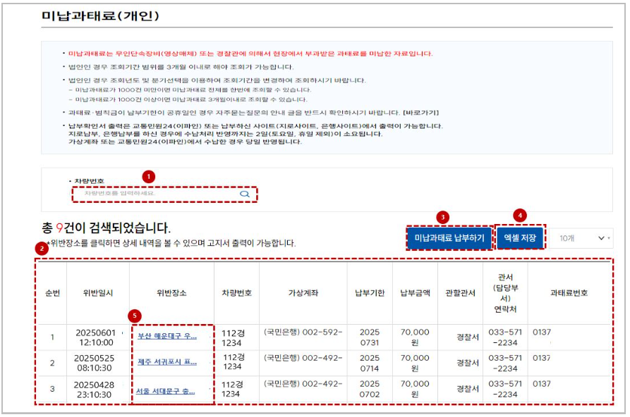 경찰청 이파인 홈페이지에서는 본인의 교통범칙금과 과태료 내역을 간편하게 확인할 수 있습니다. 미납된 건뿐만 아니라 이미 납부한 내역도 함께 조회할 수 있어, 이중 납부나 납부 누락을 방지하는 데 도움이 됩니다. 또한, 과거의 위반 내역도 열람이 가능하므로, 운전 이력을 꼼꼼히 관리하고자 하는 분들에게 매우 유용한 기능입니다.