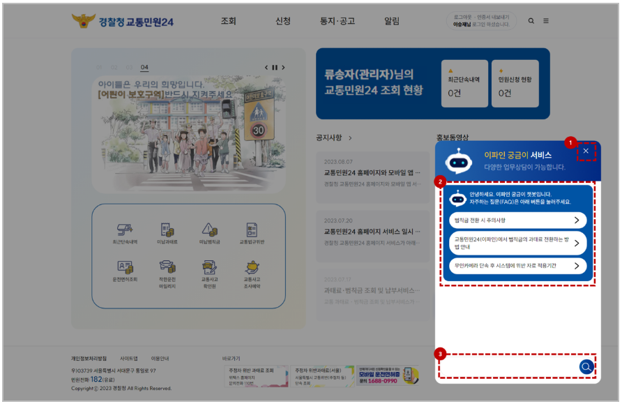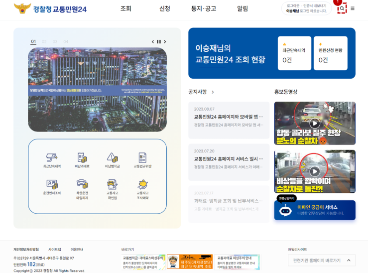 경찰청 이파인 홈페이지에서 제공하는 주요 교통민원 서비스 안내