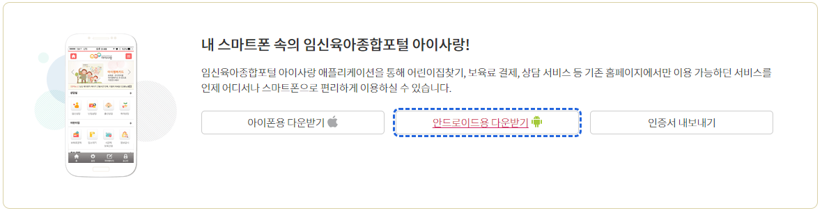 - 안드로이드와 iOS에서 아이사랑 보육포털 앱 사용 가능.