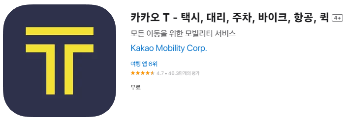 카카오택시 아이폰 앱 바로가기 - 택시, 대리, 주차, 바이크, 항공, 퀵