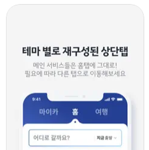 카카오 T의 혁신을 통해 모든 이동의 고민으로부터 벗어나 더 편하고, 즐겁고, 가치 있는 일상을 만들어갑니다. 테마 별로 재구성된 홈 상단탭에서 원하는 서비스를 찾아 이용해보세요. • 홈