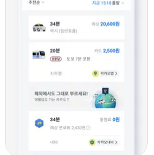 - 예약은 카카오 T 앱을 통해 간편하게 가능.